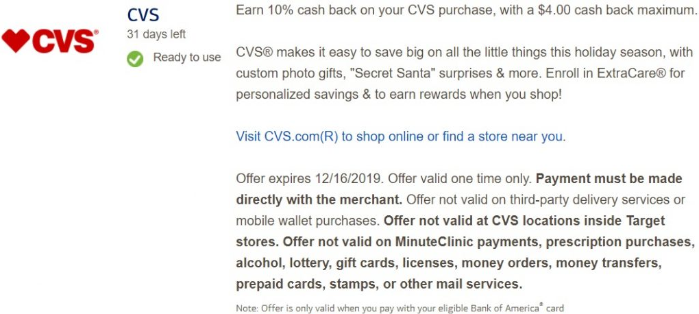 - Earn 10% cash back on your CVS purchase, $5 cash back maximum